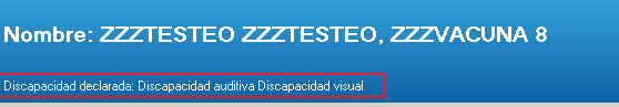 En el libro de citas aparecerá un texto en la banda de demográficos que informa de que el paciente tiene la marca de discapacidad.