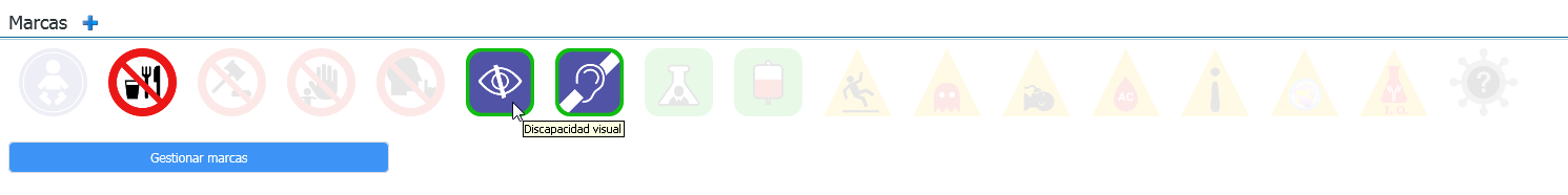 En Millennium existe un modo de documentar que el paciente tiene discapacidad auditiva o discapacidad visual. Esta información se incluye dentro del apartado de marcas y se gestiona a través del formulario de Marcas que se puede abrir en el componente de “Marcas” de la Plantilla de trabajo.