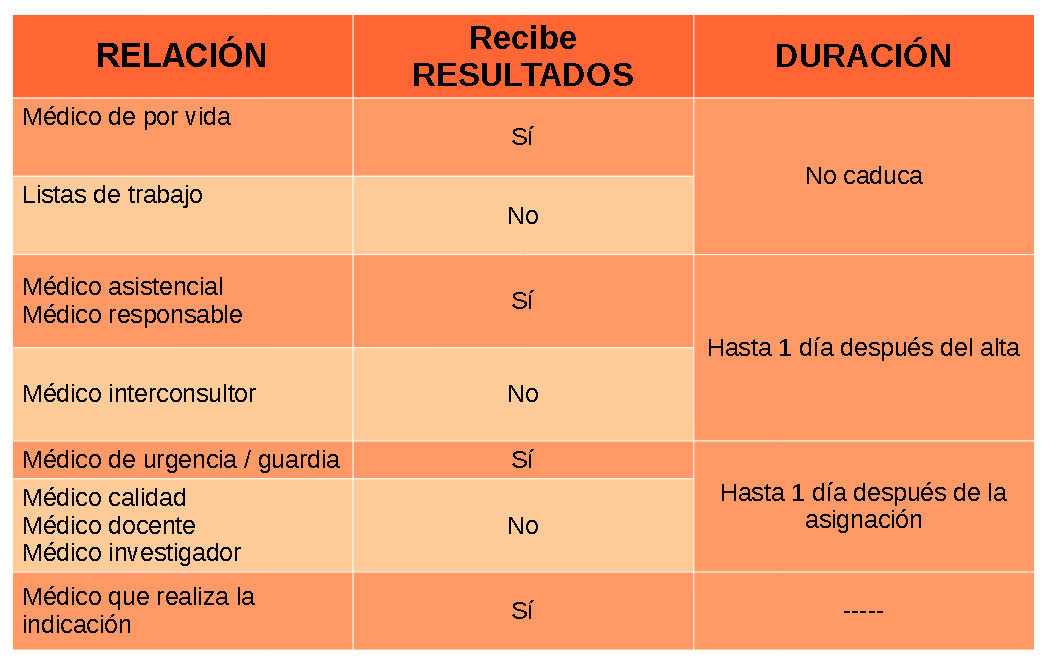 La relación permanecerá hasta 1 día después de que el paciente se dé de alta. Se recibirán todos los resultados de pruebas complementarias relacionadas con el paciente.