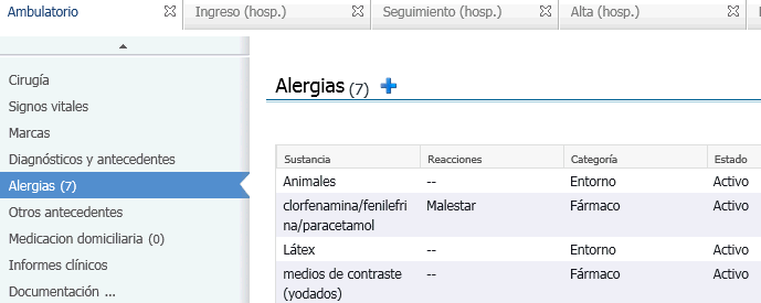 Es importante documentar las alergias en este módulo, ya que si se documentan en otro lugar no existirá un automatismo que avise de las mismas.